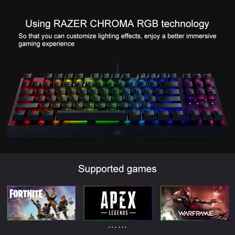 ชื่อผลิตภัณฑ์:คีย์บอร์ดกลไกแบบมีสายไฟ RGB แบบไม่มีคีย์ V3ของ Razer Blackwidow