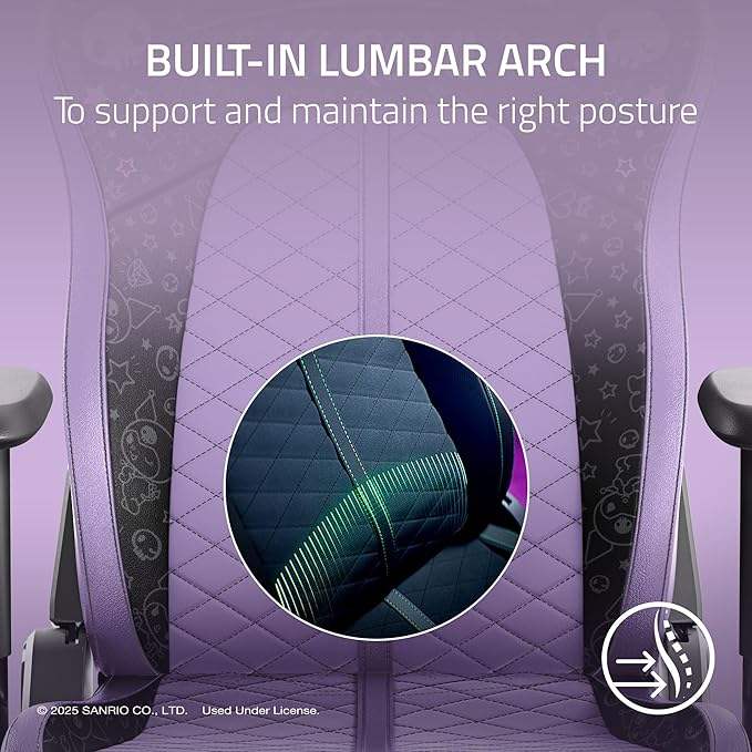 Razer Enki x เก้าอี้เล่นเกมที่จำเป็นตลอดทั้งวันความสะดวกสบายในตัวเบาะโค้งเอวที่ได้รับการปรับให้เหมาะสม Kuromi ตัวอย่างฟรี