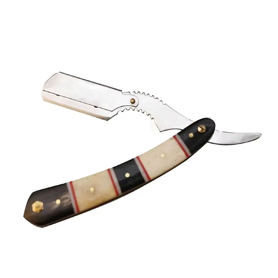 มีดโกนพร้อมใบมีดคมธรรมชาติควายฮอร์นด้ามจับกระดูกสำหรับโกนหนวดและตัดผม