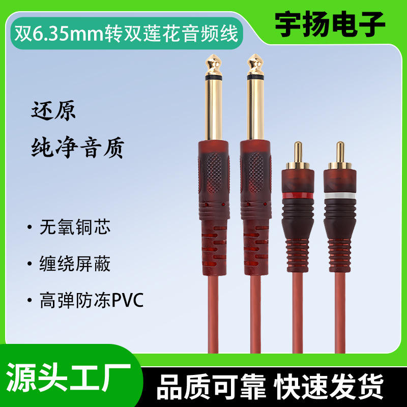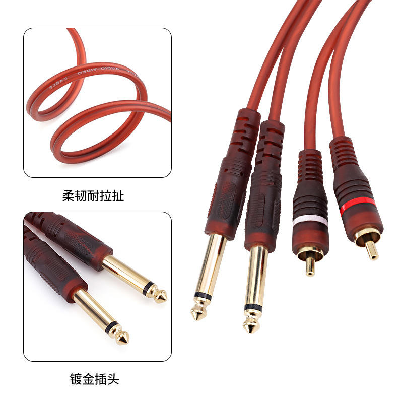 สายสัญญาณเสียง RCA ถึง 6.35 มม. แบบสองหัวต่อ สีแดงเข้ม สำหรับคอนโซลผสมเสียงและวิดีโอ