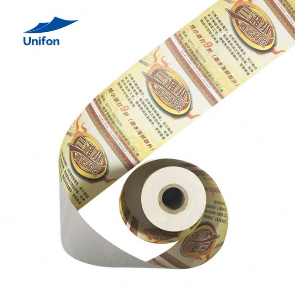 กระดาษม้วนความร้อนพิมพ์สีใหม่ สำหรับเครื่องเอทีเอ็ม แบบมีรูเจาะ ขนาด 80x80 มม. 80x150 มม. 57x40 มม. กระดาษม้วนความร้อนแบบกำหนดเอง