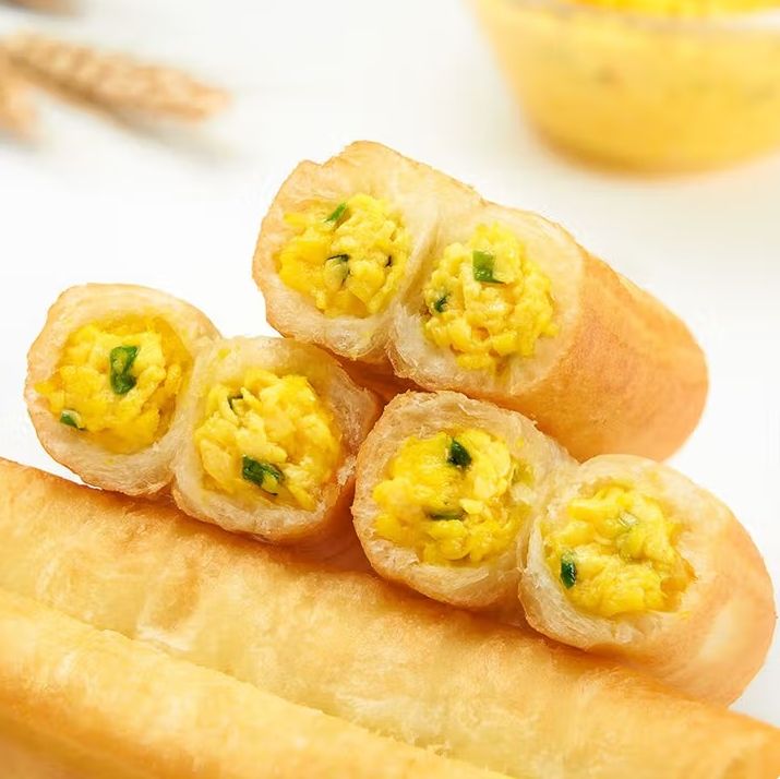 แท่งเสียบขนมปังที่เต็มไปด้วยไข่ทำไว้ล่วงหน้าสำหรับการจัดหาร้านอาหารอาหารเช้าแบบจีนทอดพร้อมถุง800กรัม