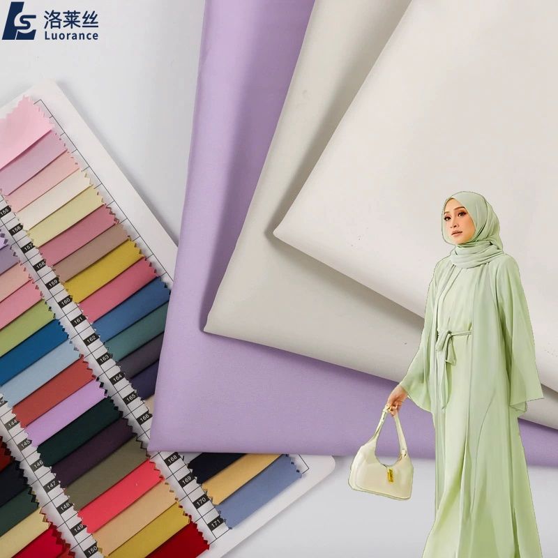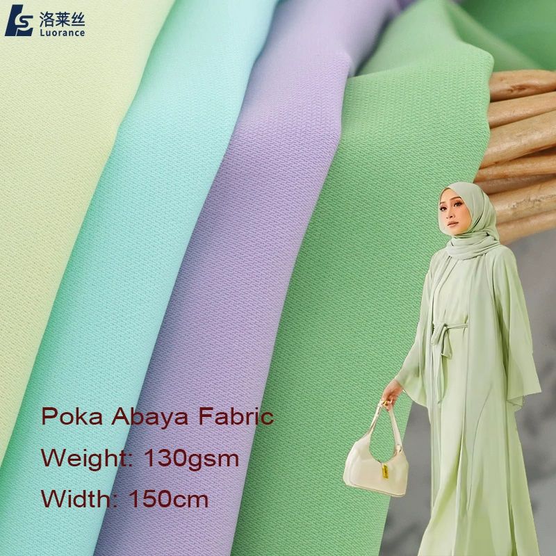 ผ้าสำเร็จรูปคุณภาพสูง 130gsm ผ้าทวิลล์ด้าน SPH โพลีเอสเตอร์ 100% ผ้าโปก้าอะบายะสำหรับชุดมุสลิม
