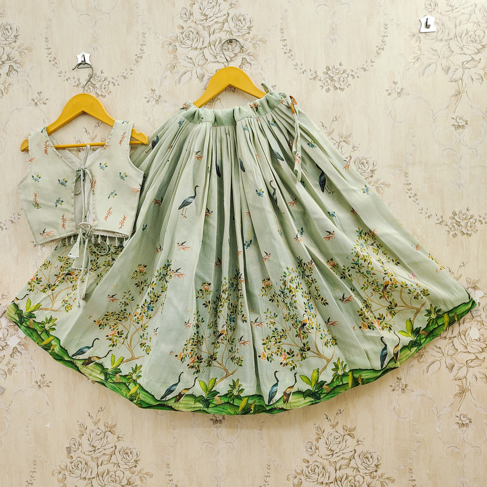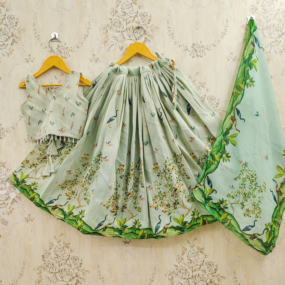 ชุดเลเฮนกาโชลีสำเร็จรูป ดีไซน์แบบดั้งเดิมจากเมืองจัยปุระ สำหรับเด็กผู้หญิง อายุ 2-8 ปี ผลิตจากโพลีเอสเตอร์ ความยาวคลุมพื้น ทำจากวัสดุรีไซเคิล