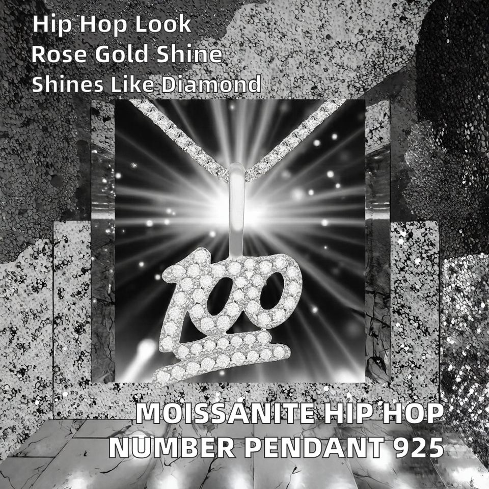 จี้เพชรโมอิสซาไนต์ทรงตัวเลขชุบทองคำขาว 100 จุด พร้อมส่ง สไตล์ฮิปฮอป เงินแท้ 925 ผ่านการทดสอบเพชร เครื่องประดับแร็ปเปอร์