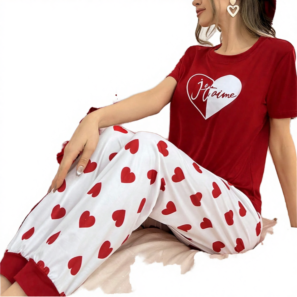 ชุดนอนวาเลนไทน์ลายหัวใจสีตัดกัน ระบายอากาศได้ดี เอวยางยืด สำหรับผู้หญิง น่ารัก สวมใส่สบาย พร้อมส่ง