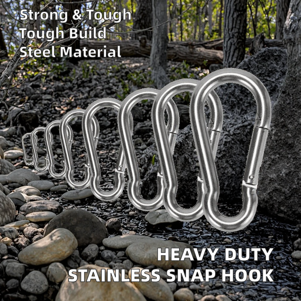 คาราบิเนอร์คลิปปืนสั้นสแตนเลสสำหรับงานหนักพร้อมส่งตะขอยึดสปริงแบบธรรมดาเหมาะสำหรับการตั้งแคมป์การเดินทางกลางแจ้ง