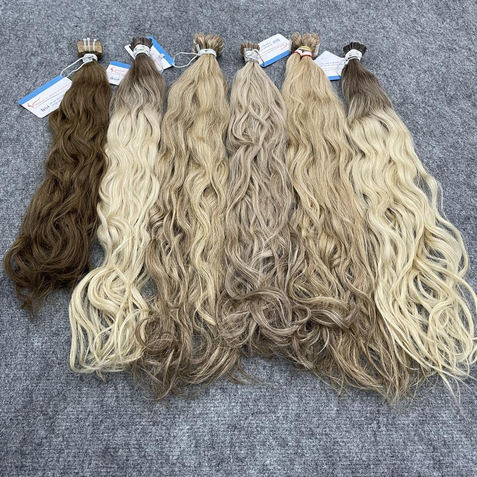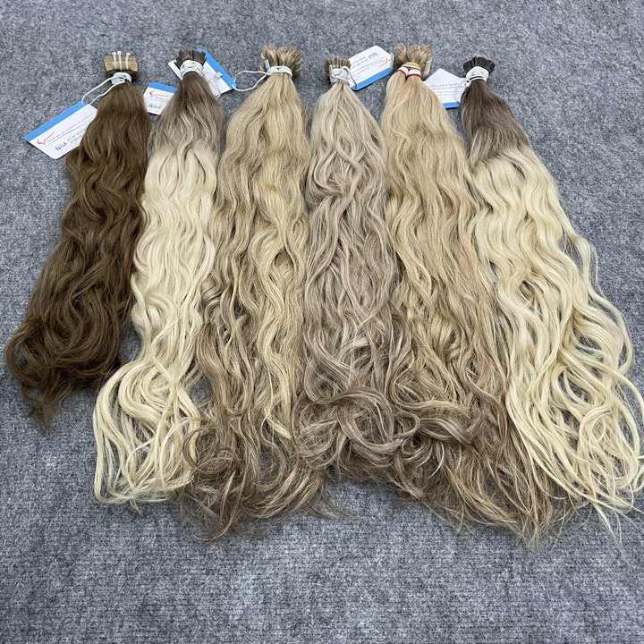 ผมต่อจากเวียดนามเป็นลอนธรรมชาติเคราตินปลายแบนผมคนแท้ย้อมสีผม30นิ้ว