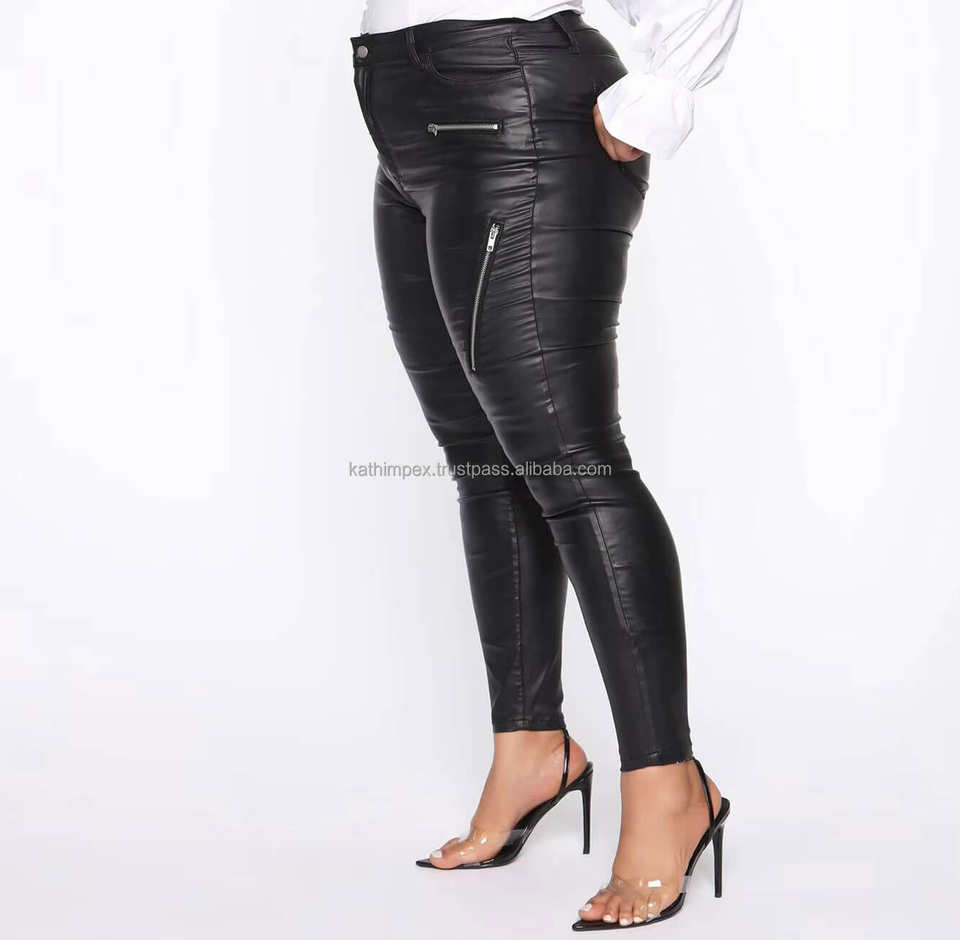 กางเกงทรงดินสอเอวสูงมีซิปสีดำมีกระเป๋าปะสำหรับใส่ไปงานปาร์ตี้