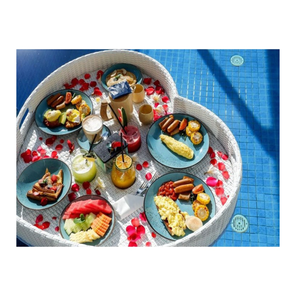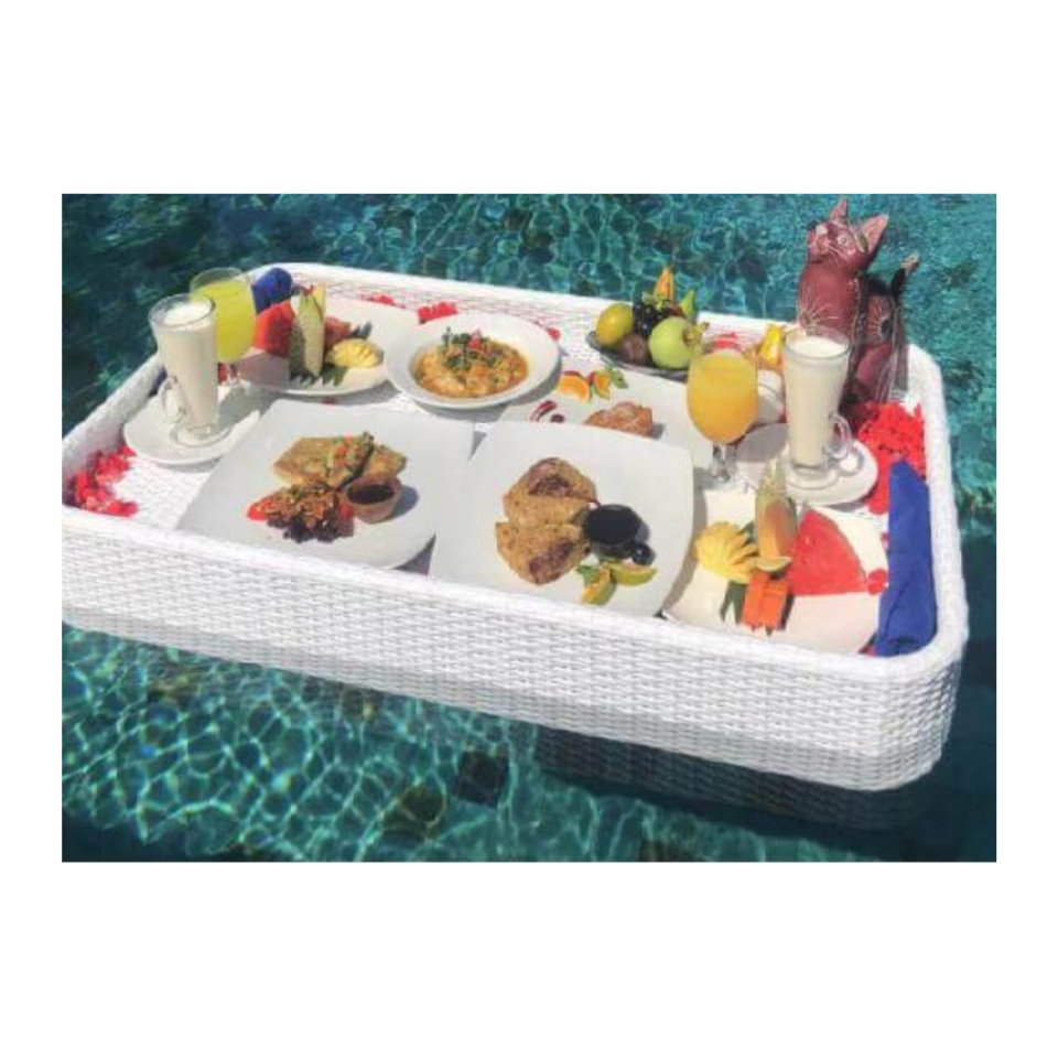 ถาดหวายทำจาก PE ถาดรับประทานอาหารแบบหรูหราสำหรับโรงแรมถาดรองอาหารพร้อมสระว่ายน้ำ