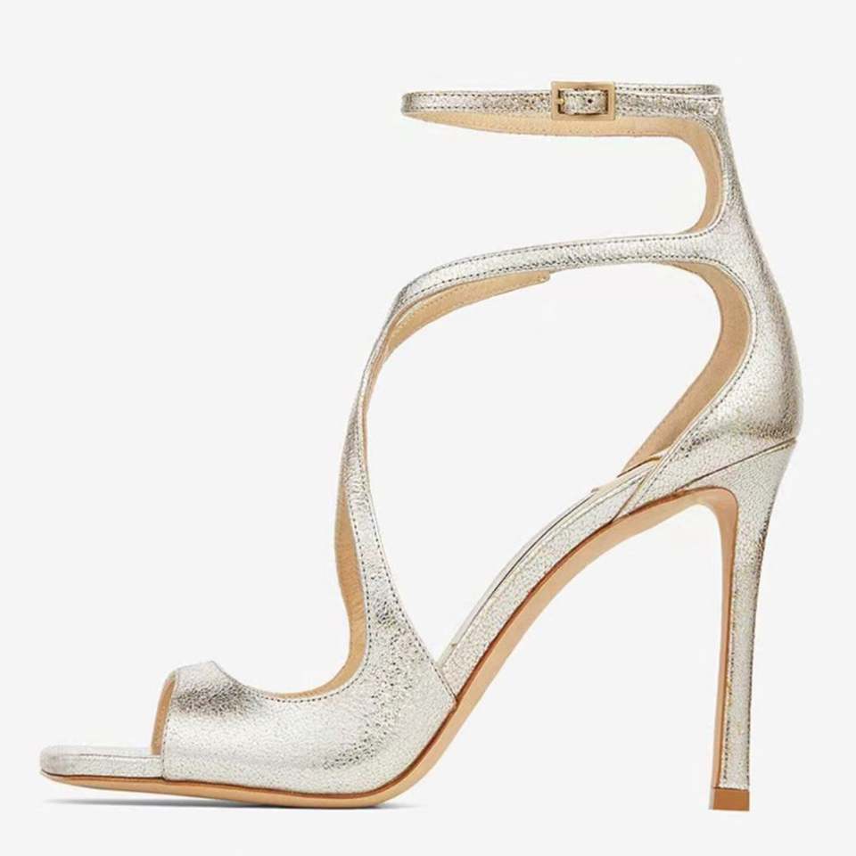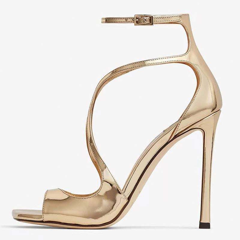 Ready Stock Hot Recommend Spring and Summer New Cross Button Open Toe Stiletto High Heels 2026