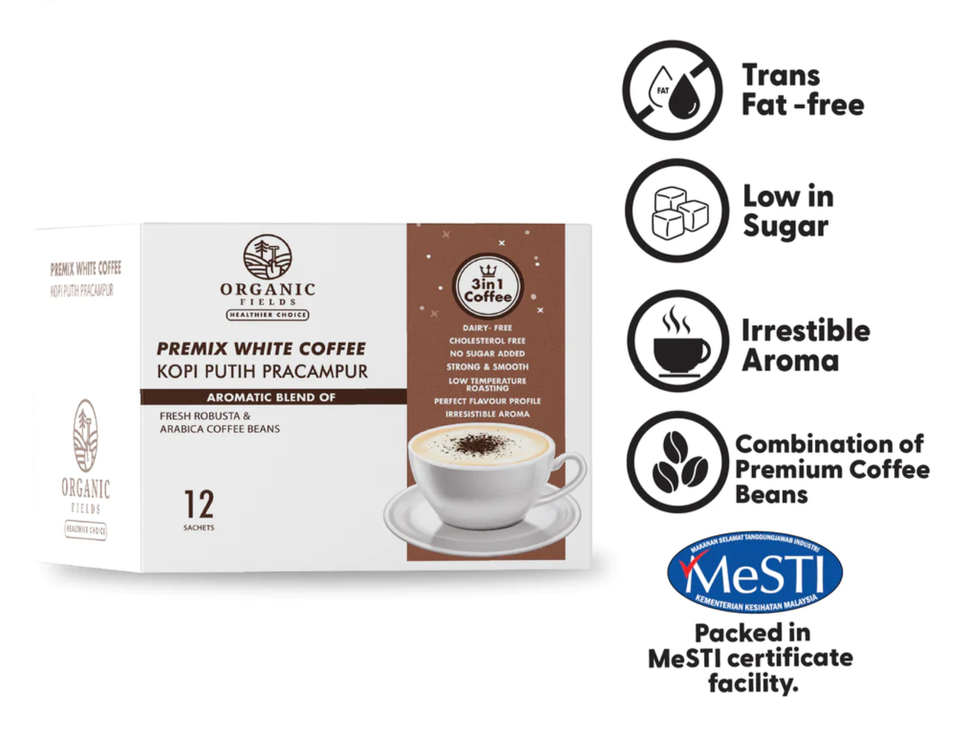 กาแฟขาวออร์แกนิคฟิลด์พรีเมียม รสชาติกลมกล่อม น้ำตาลน้อย ปราศจากไขมันทรานส์ ผสมผสานเมล็ดกาแฟโรบัสต้าและอาราบิก้า กลิ่นหอม บรรจุกล่องครีม มีสินค้าพร้อมส่ง