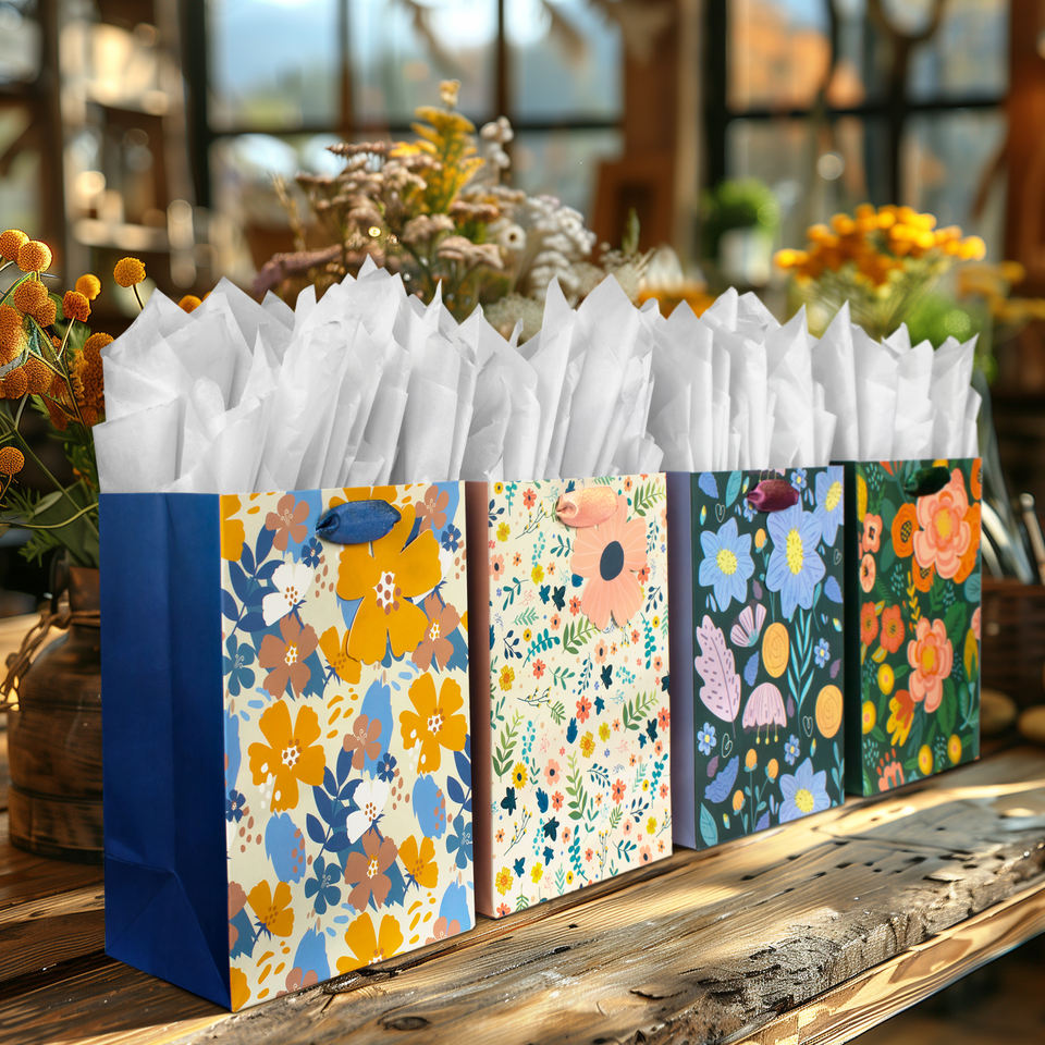 Packing:4 Gift Bags + 4 Hanging Cards + 8 Tissue Paper