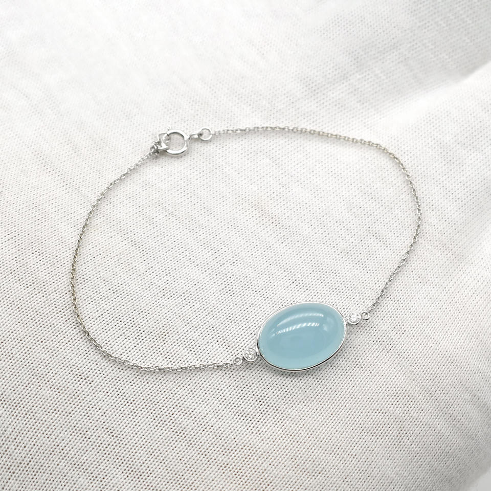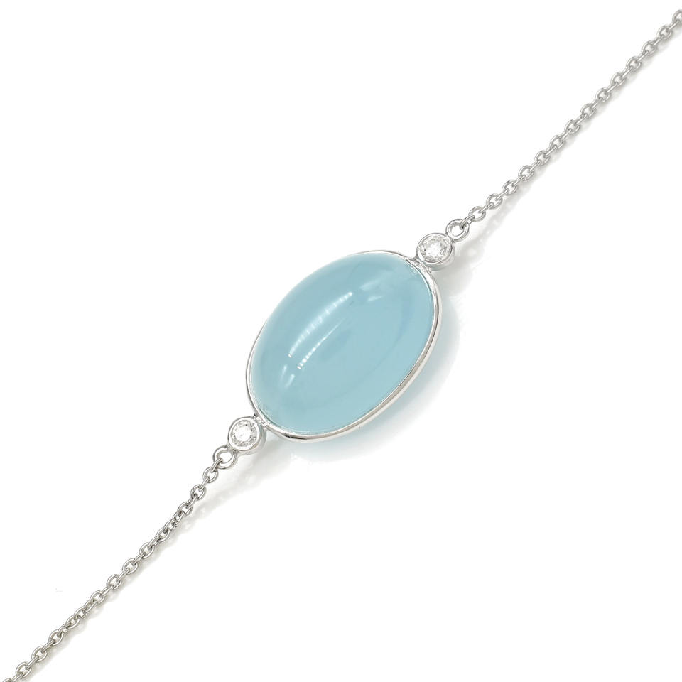 พร้อมจัดส่ง สร้อยข้อมือแต่งงานทองคำขาว 14K ประดับพลอยรูปไข่ทรงคาโบชอง 7.45 กะรัต ประดับด้วยอะความารีนธรรมชาติและเพชรสำหรับผู้หญิง