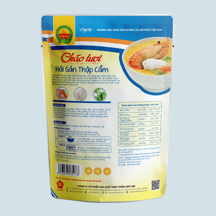 ชื่อผลิตภัณฑ์:โจ๊กรวมอาหารทะเลสด