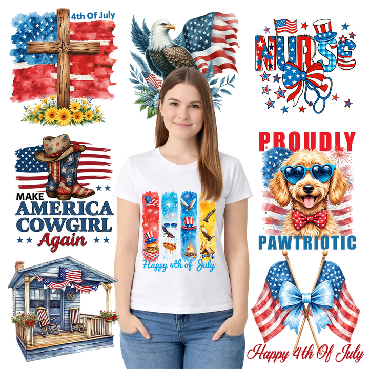 พร้อมพิมพ์ลาย DTF สำหรับงานแต่งงาน วันวาเลนไทน์ ลายคาวเกิร์ล โบว์ พยาบาล ลาย Juneteenth สำหรับเสื้อยืดและหมวก