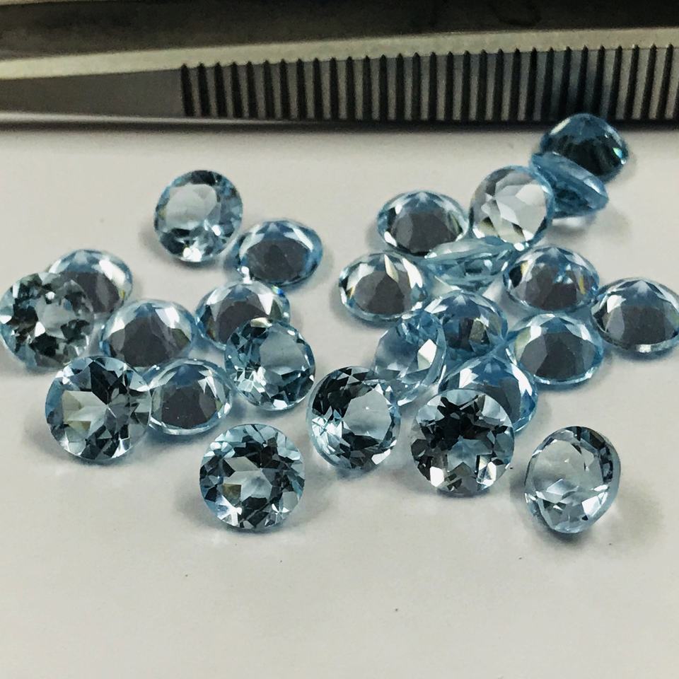 พลอยบุษราคัมสีฟ้าท้องฟ้าธรรมชาติเจียระไนทรงกลม8มม. อัญมณีกึ่งมีค่าตัดหลวมสำหรับขายเครื่องประดับ