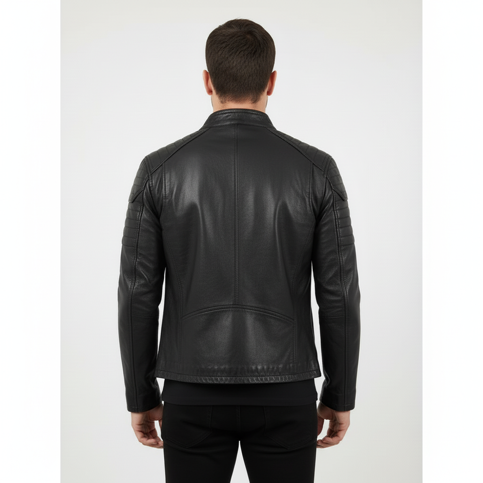 เสื้อแจ็กเก็ตหนังผู้ชายสไตล์สตรีทแจ็กเก็ตหนังแท้สวมใส่สบาย1ชิ้น