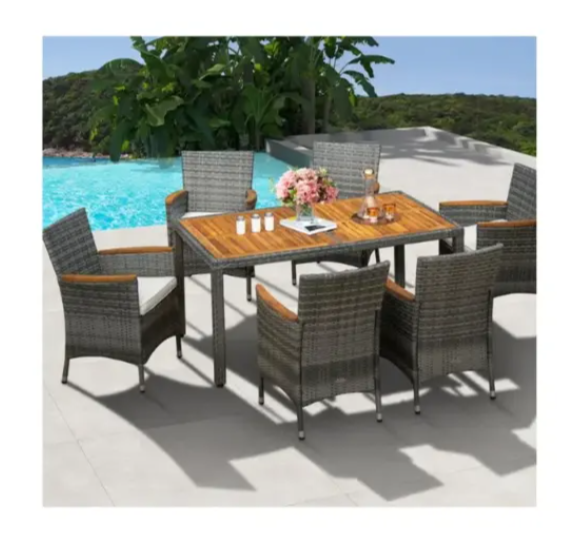 Ready to Ship Dining Table Set One Table 6 Chairs Outdoor Wicker Rattan Furniture 6-Seater MDF Wood Villas Directly Manufacturer