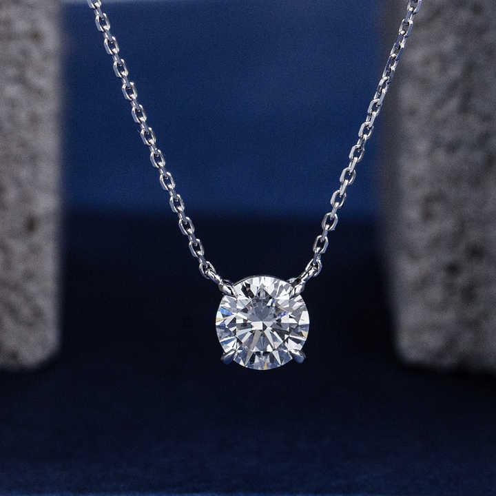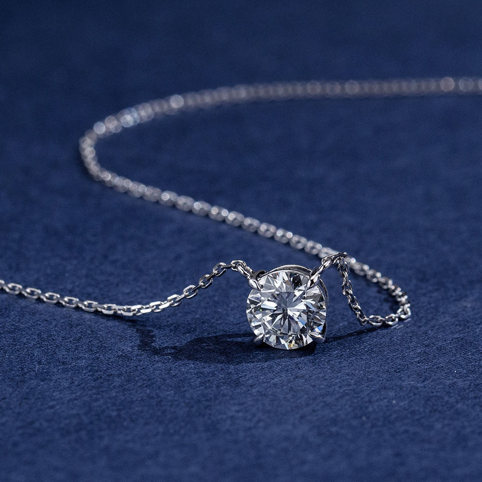 พร้อมจัดส่ง MSN-961 สร้อยคอเพชรแล็บทรงกลม 1 กะรัต ทองคำขาว 9K แฟชั่นเพชรแล็บ
