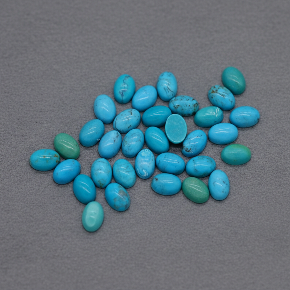 พร้อมส่ง หินเทอร์ควอยซ์ธรรมชาติ 4x6 มม. แบบคาโบชอง ลายใยแมงมุมสีดำ หินเทอร์ควอยซ์แบบหลวมสำหรับงานออกแบบ