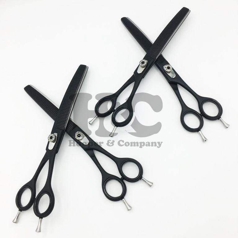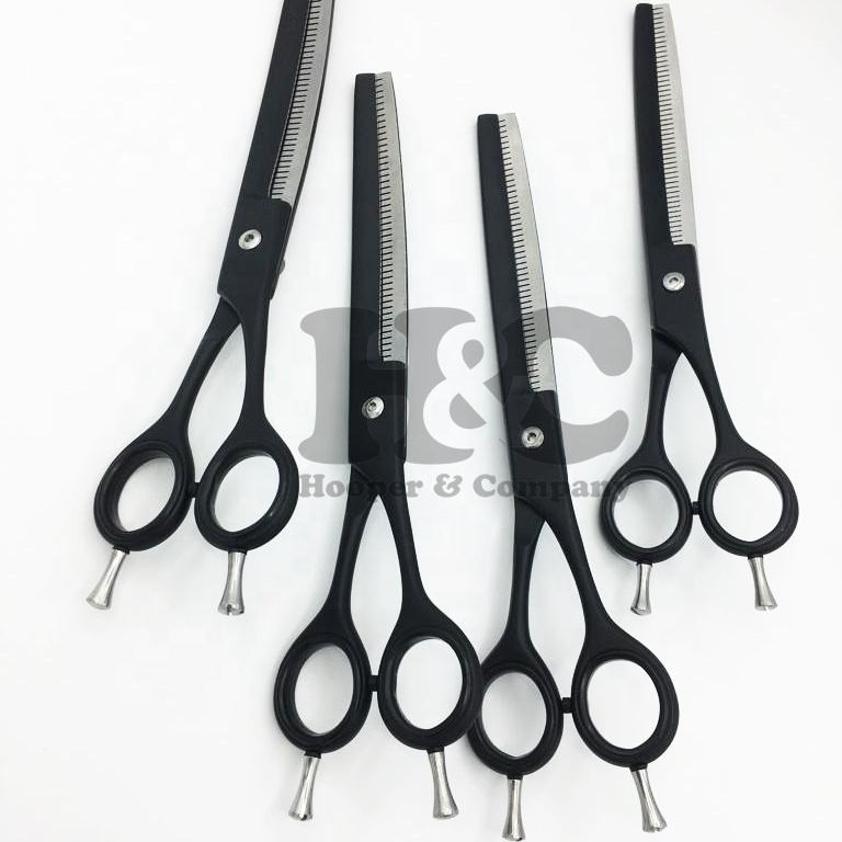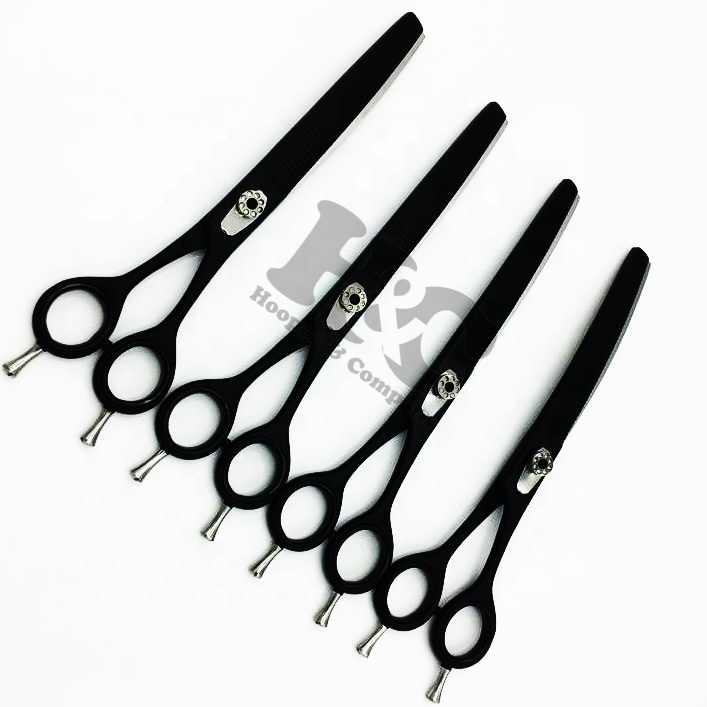 ชุดกรรไกรตัดขนสัตว์เลี้ยงกรรไกรตัดขนสัตว์สีดำแบบโค้งอย่างยั่งยืนทำจากสเตนเลสสตีล