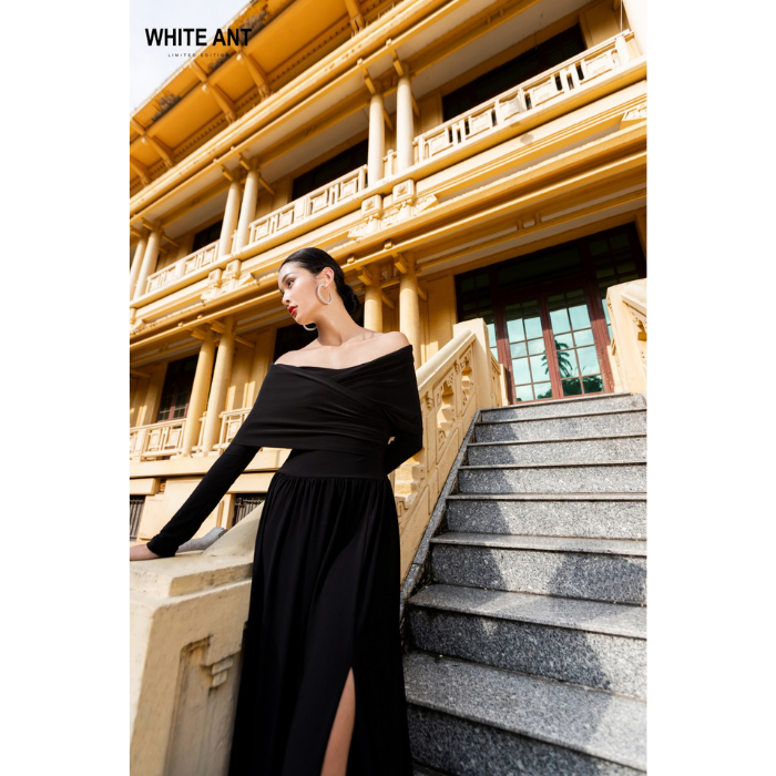 ชุดเดรสยาวแบบสุภาพสำหรับสตรีชุดเดรสทรงวงกลมผ้าเรยอน75% 25% โพลีสีขาวสำหรับฤดูร้อนโรงงานเวียดนาม
