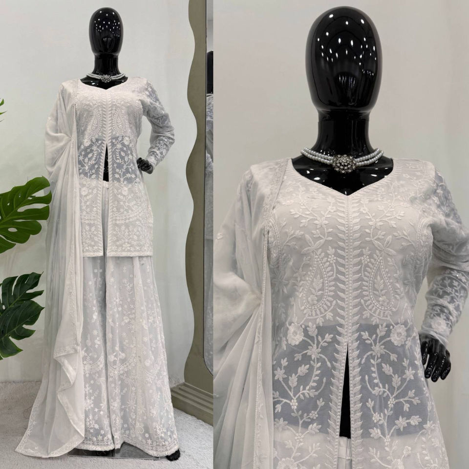 งานปักแบบอินเดียโบราณซาลวาร์คาเมซพร้อมด้วยงานปักที่หรูหราและดูเพ็นท์