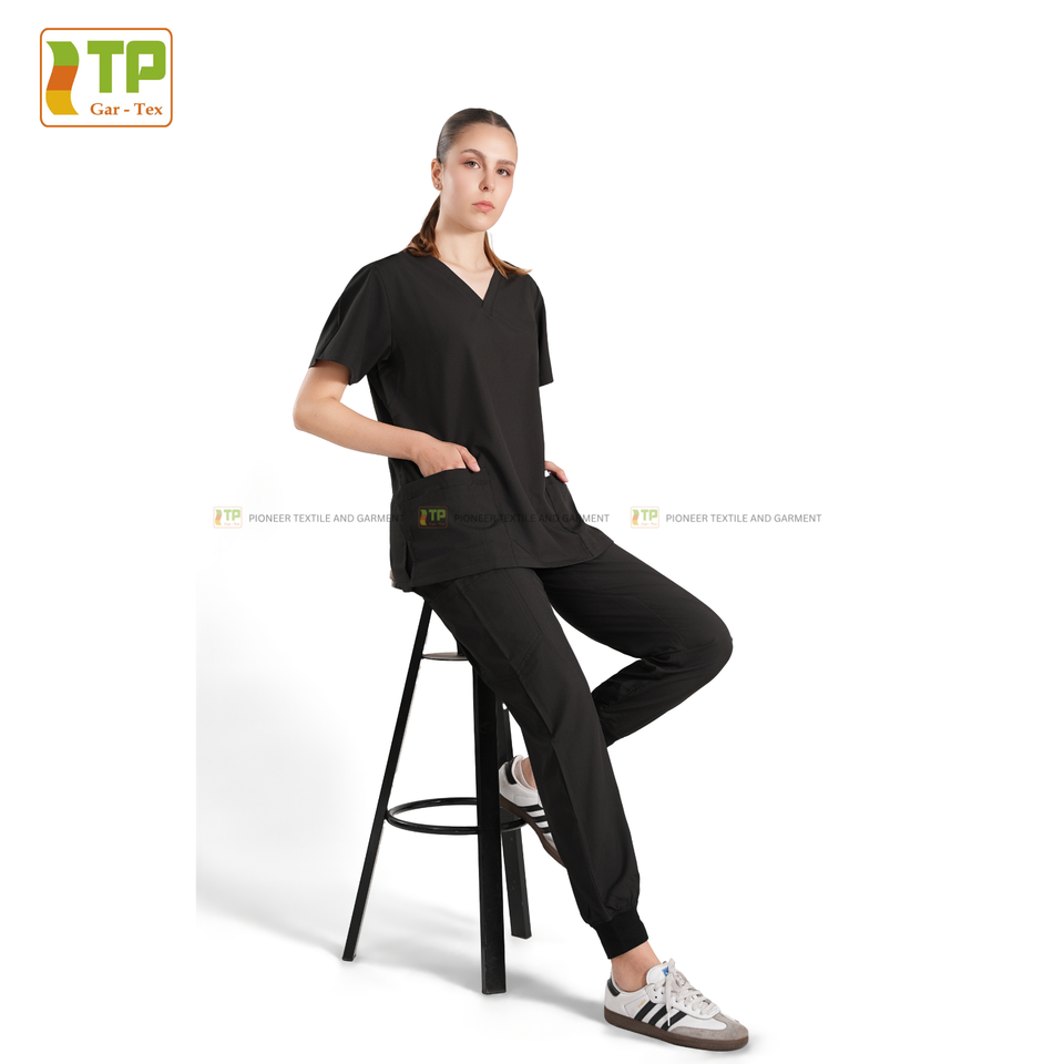 ชุดเครื่องแบบโรงพยาบาลผ้าโพลีสแปนเด็กซ์ระบายอากาศสำหรับสตรีพร้อมส่งผลิตจากเวียดนาม
