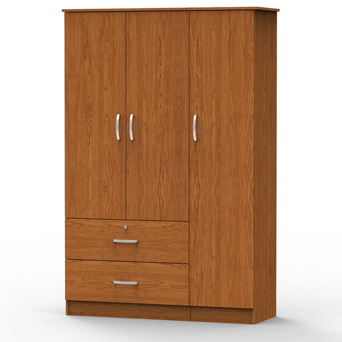 ตู้เสื้อผ้าสำเร็จรูป ดีไซน์ไม้ ตู้เก็บของในห้องนอน ทำจากแผ่น MDF พร้อมชั้นวางของหลายชั้น