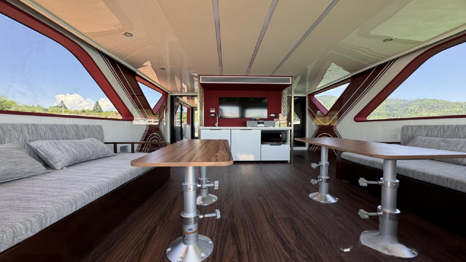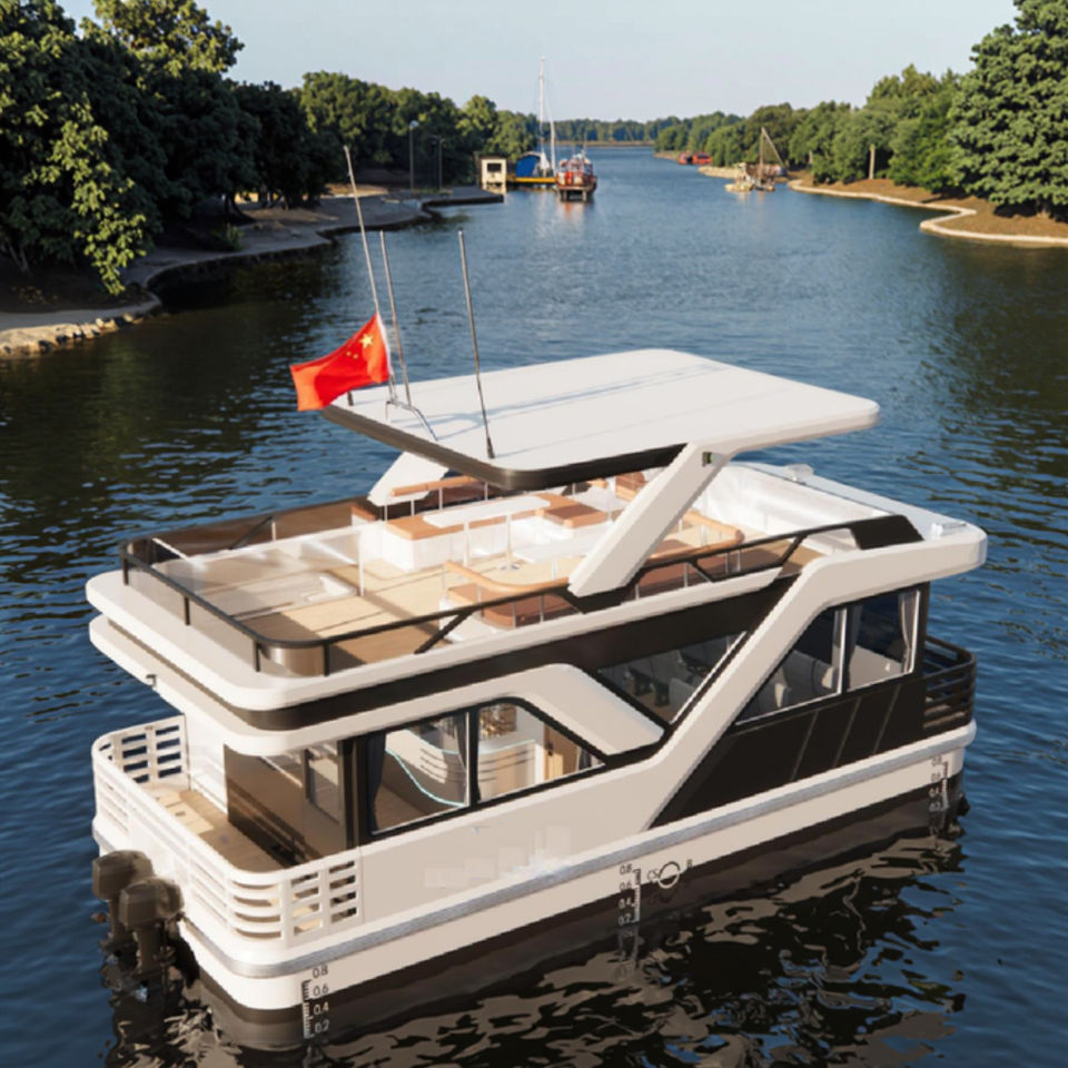 33ft Aluminum Houseboat with Outboard Engine Pure Electric Floating Water Party Boat for Leisure & Entertainment Ready Deliver