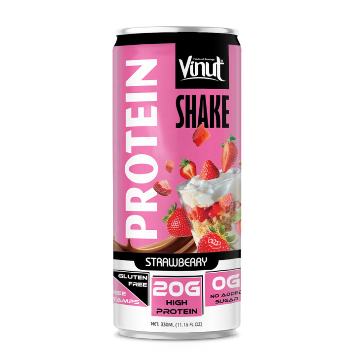 พร้อมดื่มโปรตีนเชครสสตรอเบอร์รี่ VINUT 330ml ตัวอย่างฟรี ออกแบบเอง บริการ OEM ODM ฉลากส่วนตัว