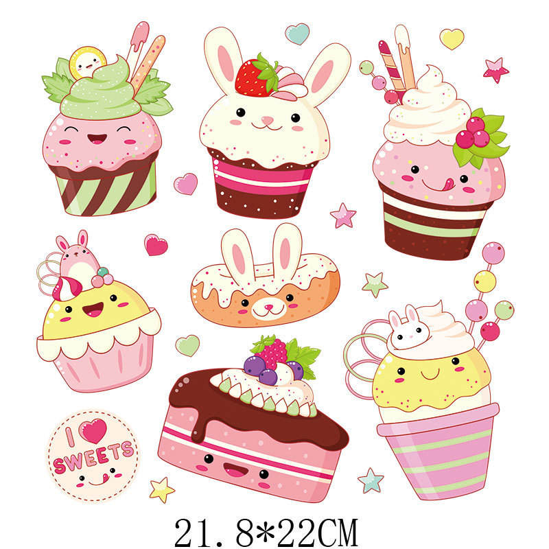 Ready to Press Cute Smile DTF Printed Sticker for T-shirts Heat Transfers Cartoon Cake Pattern Iron Stickers Clothing Patches