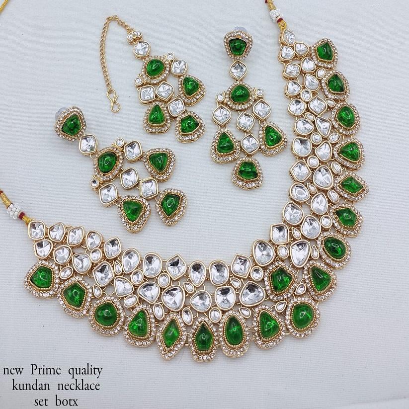 Products Name:Trending Fancy Collection Gold Plated Kundan & Pearl Necklace Set