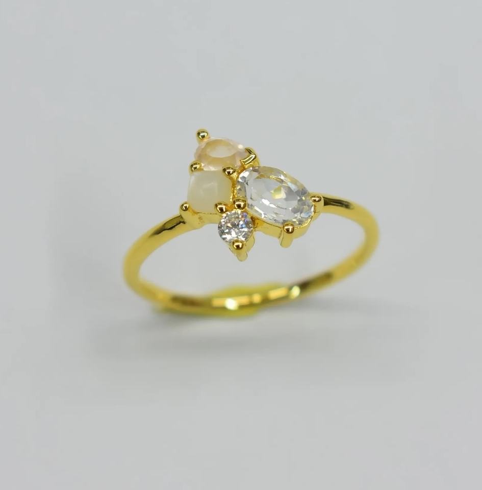 แหวน S925ชุบทอง14K คลาสสิกสีขาวบุษราคัมโรสควอตซ์ปรับแต่งได้สำหรับงานแต่งงานงานหมั้นสำหรับงานเลี้ยง