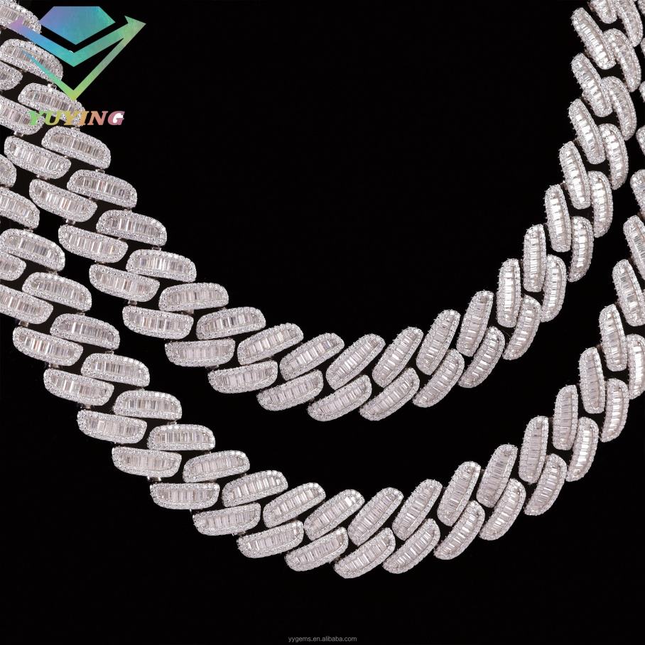 พร้อมส่ง สร้อยคิวบาลิงค์ 18 มม. เงินแท้ 925 ประดับเพชรทรงบาแก็ตต์ สร้อยคอโมอิสซาไนต์แบบคิวบาลิงค์