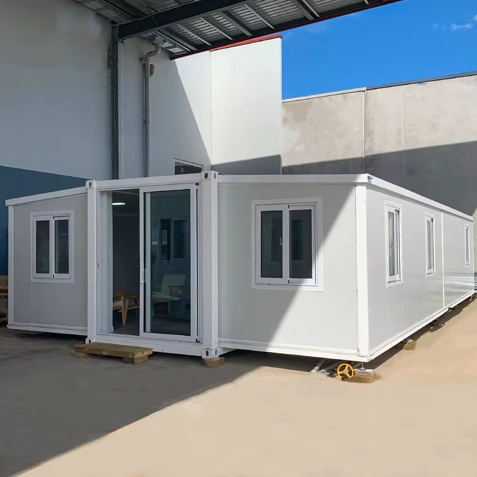 บ้านภาชนะเหล็กแบบขยายได้2ห้องนอนแบบพกพาแบบหรูติดตั้งเร็วบ้านจิ๋ว