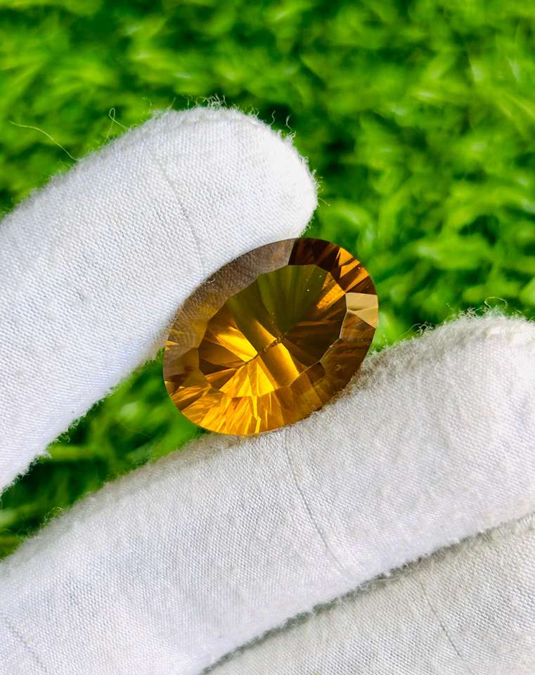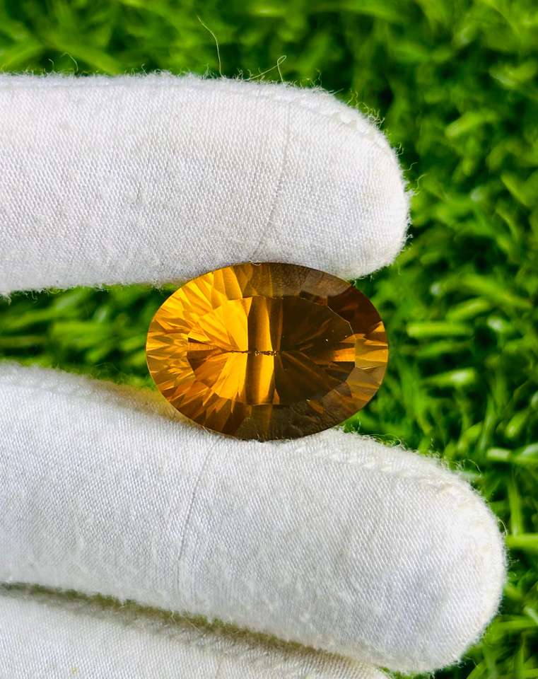 24.60กะรัตพลอยสีเหลืองมะนาวธรรมชาติแบบหลวมคุณภาพพรีเมี่ยมตัดด้วยเลเซอร์พิเศษรูปทรงวงรี