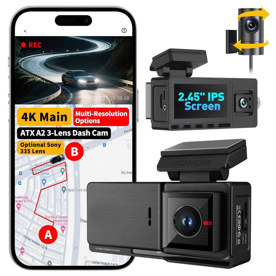 พร้อมจัดส่ง กล้องติดรถยนต์ 4K 3 ช่องทาง กล้องบันทึกภาพหน้ารถและหลังรถ พร้อมระบบมองเห็นในเวลากลางคืน เลนส์คู่