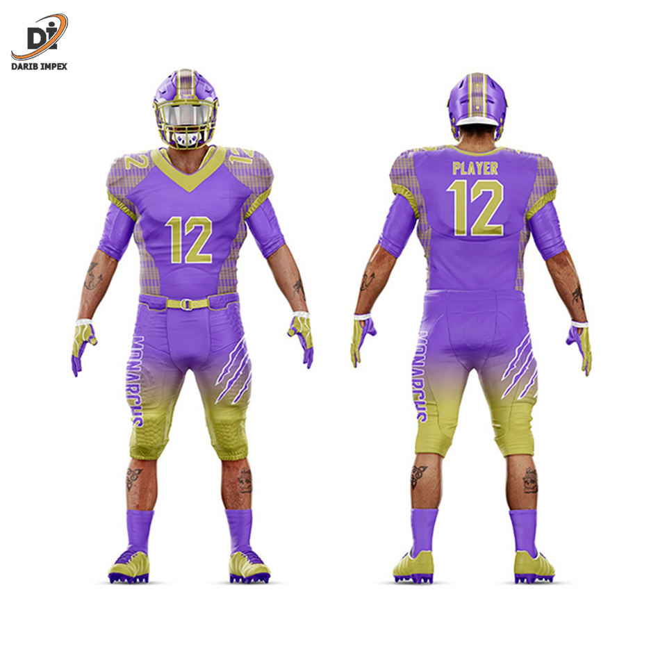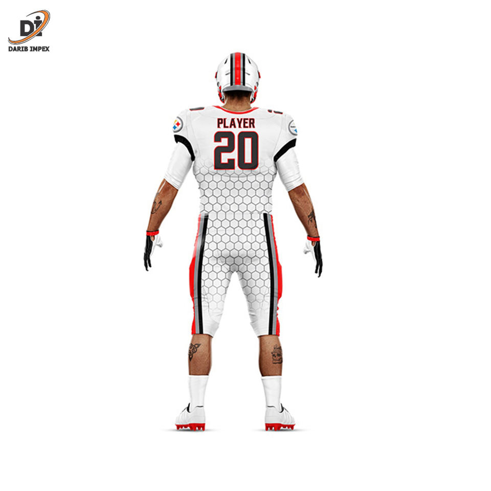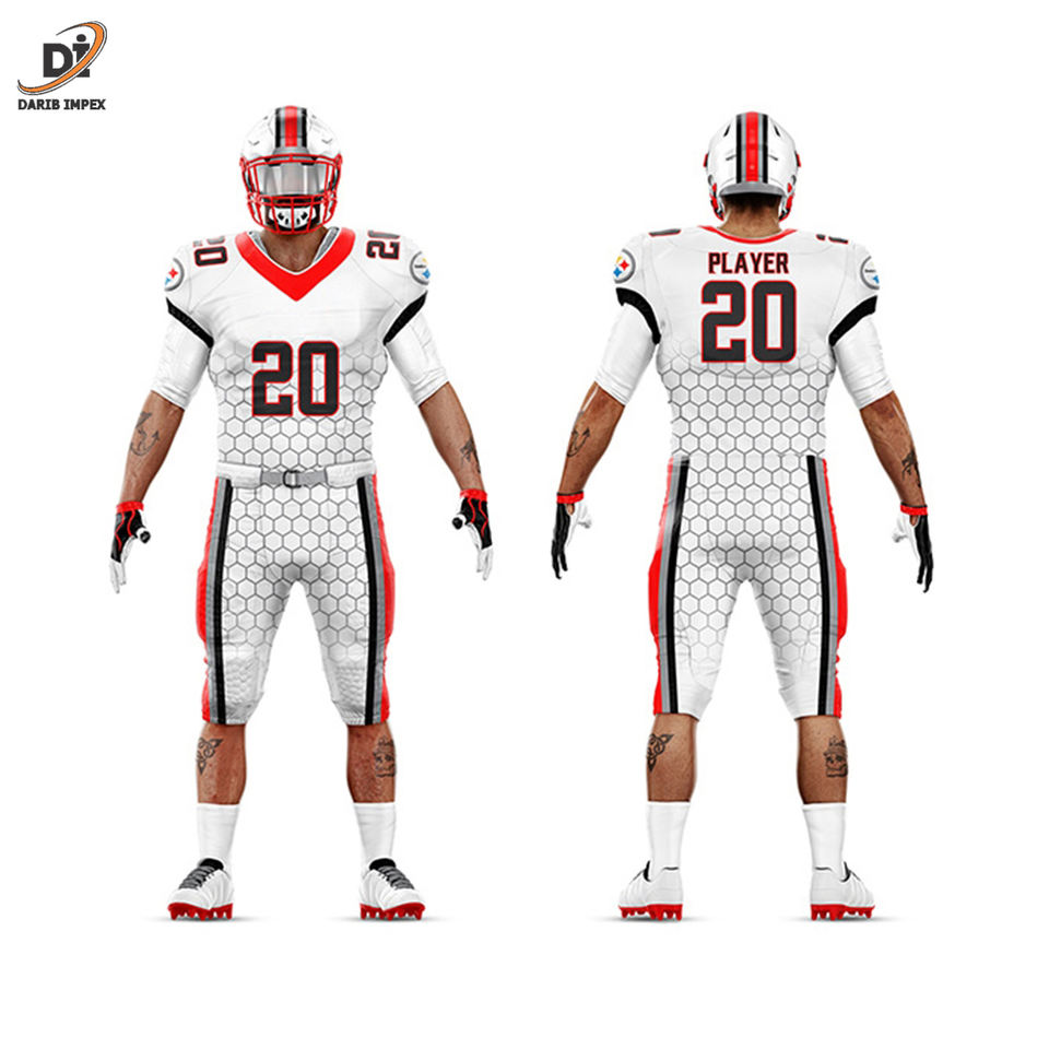 พร้อมจัดส่งชุดยูนิฟอร์มอเมริกันฟุตบอลแบบสั่งทำพิเศษ เนื้อผ้าโพลีเอสเตอร์คุณภาพสูง ระบายอากาศได้ดี