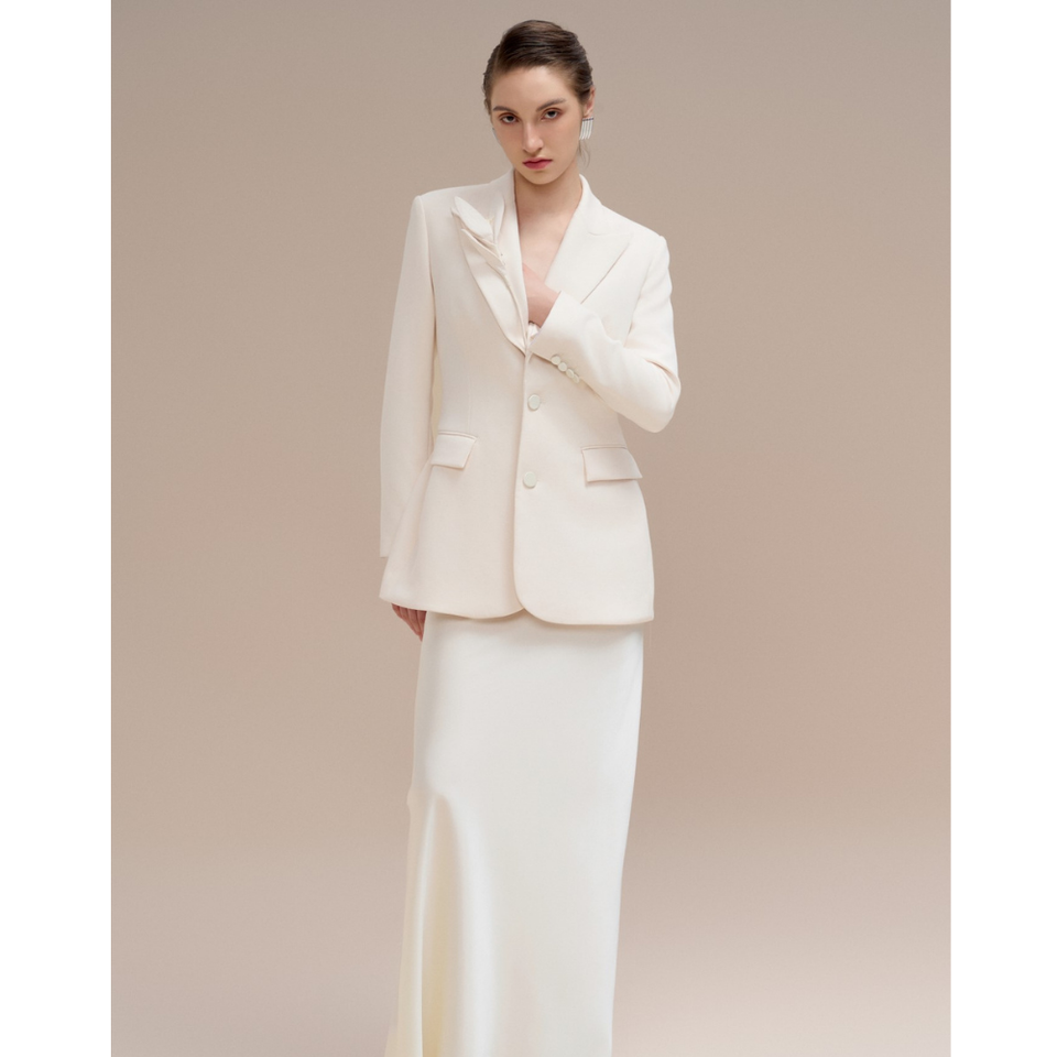 ชุดเบลเซอร์สำหรับผู้หญิงกระดุมแถวเดียว2เม็ดเสื้อเบลเซอร์ลาย Fiona notched 2024ผ้าเป็นมิตรกับสิ่งแวดล้อม
