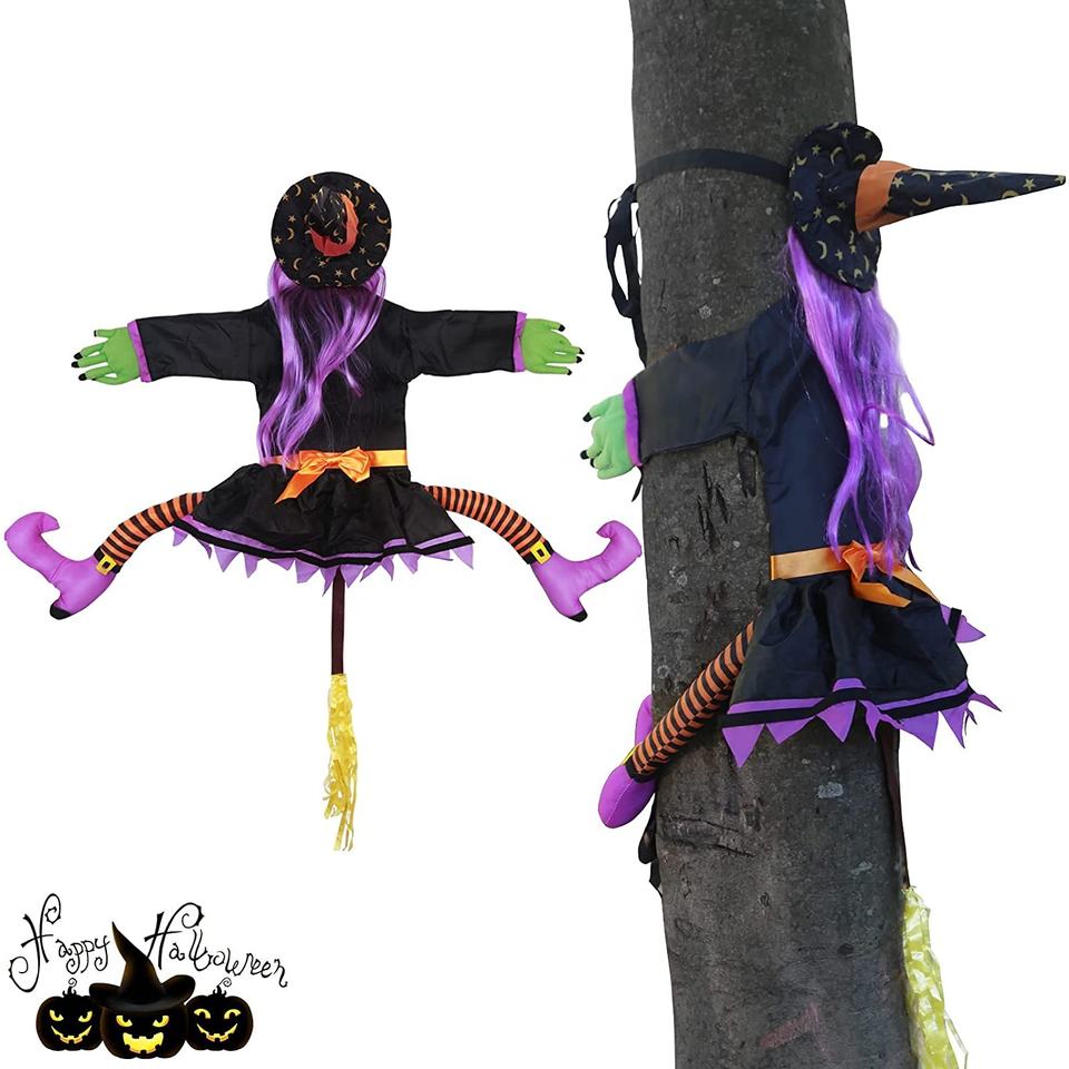 พร้อมส่ง โปรโมชั่นสุดคุ้ม แม่มดตกต้นไม้ ฮาโลวีน สีม่วง 44x31.4 นิ้ว ผ้าโพลีเอสเตอร์ ยี่ห้อ YuQi