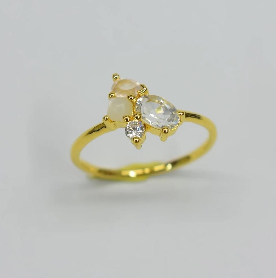 แหวนเงินสเตอร์ลิง S925ชุบทอง14K แบบคลาสสิกสีขาวบุษราคัมโรสควอตซ์พร้อมส่งสำหรับปาร์ตี้ของขวัญงานหมั้น