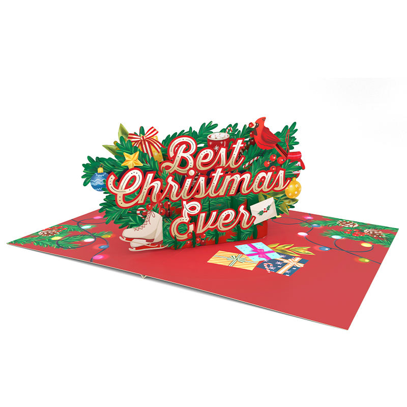 พร้อมส่ง3D ฟอสซิลแบบพับได้เมอร์รี่คริสต์มาสการ์ดอวยพรปรับแต่งที่ดีที่สุดสโลแกนที่เคยทำจากกระดาษ