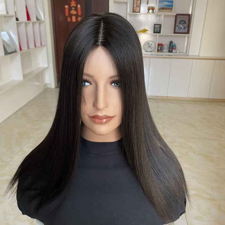 พร้อมส่ง HT-014 ท็อปเปอร์ผมแท้แบบตรงสำหรับผู้หญิงผิวขาว ฐานไหม ปิดผมบาง 150% ความหนาแน่นสูง คุณภาพดี