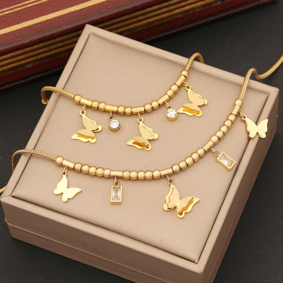 พร้อมส่งคุณภาพสูง18พันชุบทองสแตนเลสแฟชั่นผีเสื้อชุดเครื่องประดับสร้อยคอต่างหูสร้อยข้อมือชุด