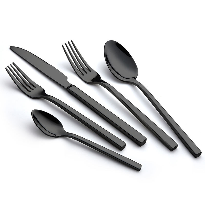 ชุดช้อนส้อมสเตนเลสเกรดอาหารสำหรับร้านอาหารโรงแรมชุดช้อนส้อมสีดำด้าน