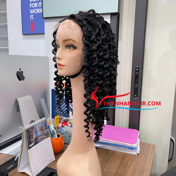วิกผมคนผมหยิกพม่าขนาดใหญ่พร้อมแผ่นปิด5x5 4ช่อลูกไม้สวิสความละเอียดสูง
