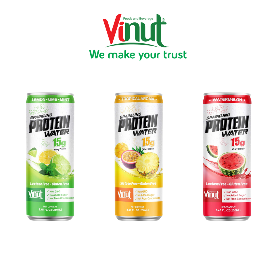 พร้อมจัดส่ง ผลิตในเวียดนาม เครื่องดื่มน้ำโปรตีนอัดลม 8.45 ออนซ์ รสแตงโม/ไม่เติมน้ำตาล/มีตัวอย่างให้ทดลองฟรี/รับผลิตแบบ OEM