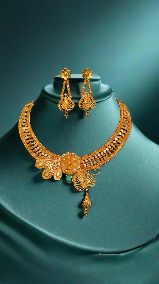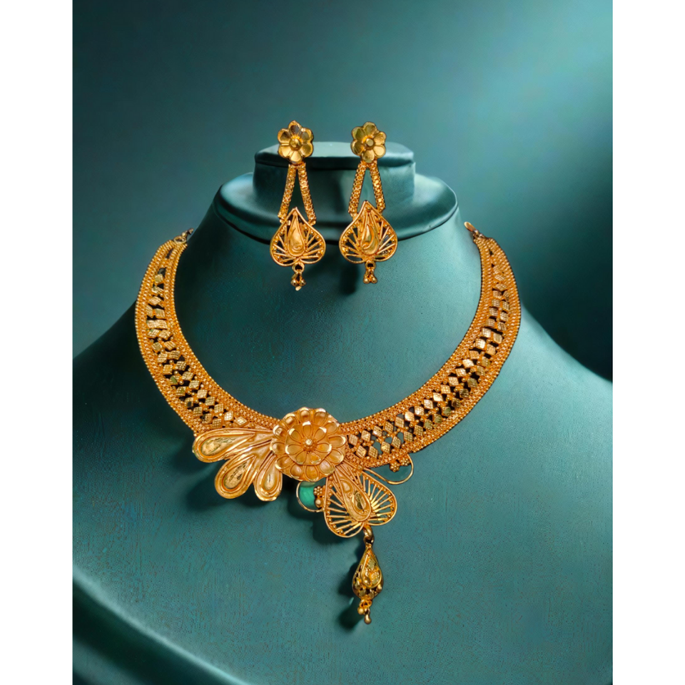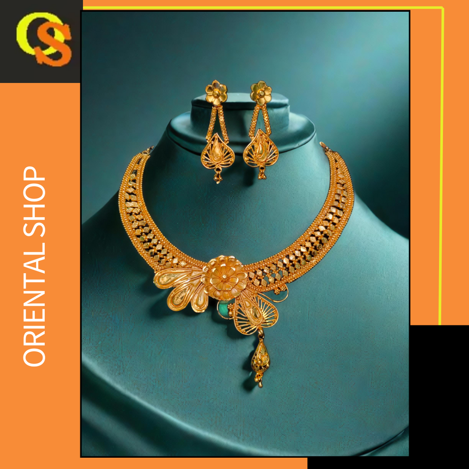 ชุดต่างหูสร้อยคอพร้อมส่งชุดเครื่องประดับต่างหูชุบทอง22K สำหรับผู้หญิงชุดสร้อยคอต่างหู